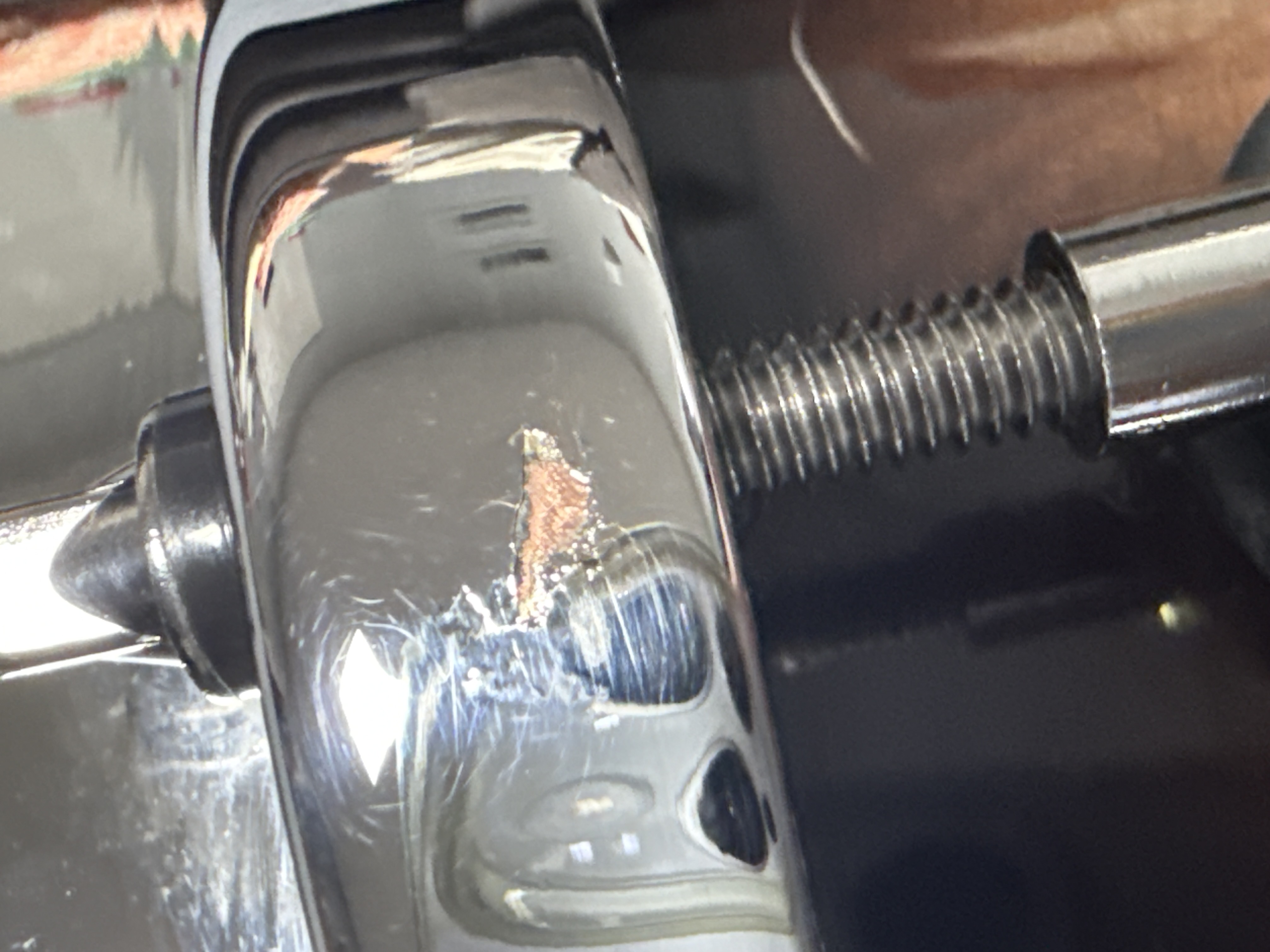 Well, I saw a spot on the hoop that flaked off revealing the copper layer. I think it goes zink copper, nickel,chrome. Looks llke the issue could be defect in adhering the stack together. Also a very thin layer of chrome. I saw little pitting marks on the hoops. Looks like it will flake off more over time. I initiated a refund and I have to send it a US warehouse and they sent me a free shipping label.