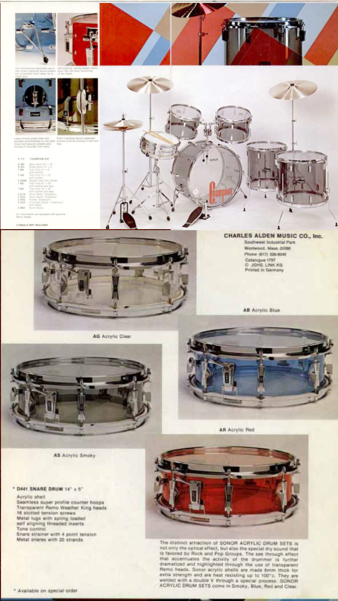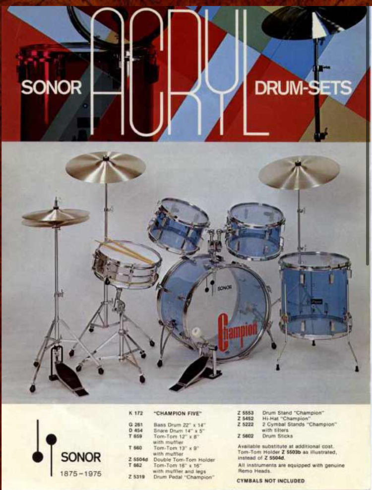 “These sets are rare, especially in such excellent condition. Sonor shells were thicker than Ludwig’s Vistalite shells from this same era. Sonor shells were 6mm.