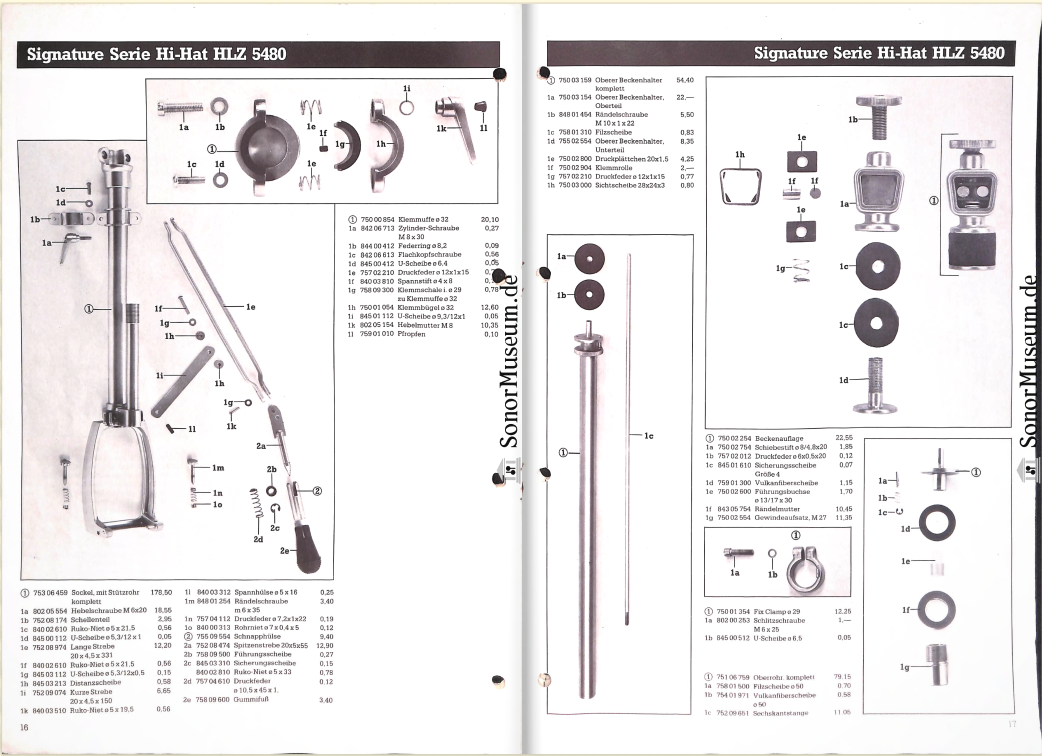 Here is an exploded view of the Sonor Signature Hi Hat stand as well as inner workings of Phonic Hi Hat stands, which I am relatively confident were common to the Signature series as well. There were obviously lots of parts, and the assembly of these was likely very laborious, comparative to what you would expect with the 600 series.