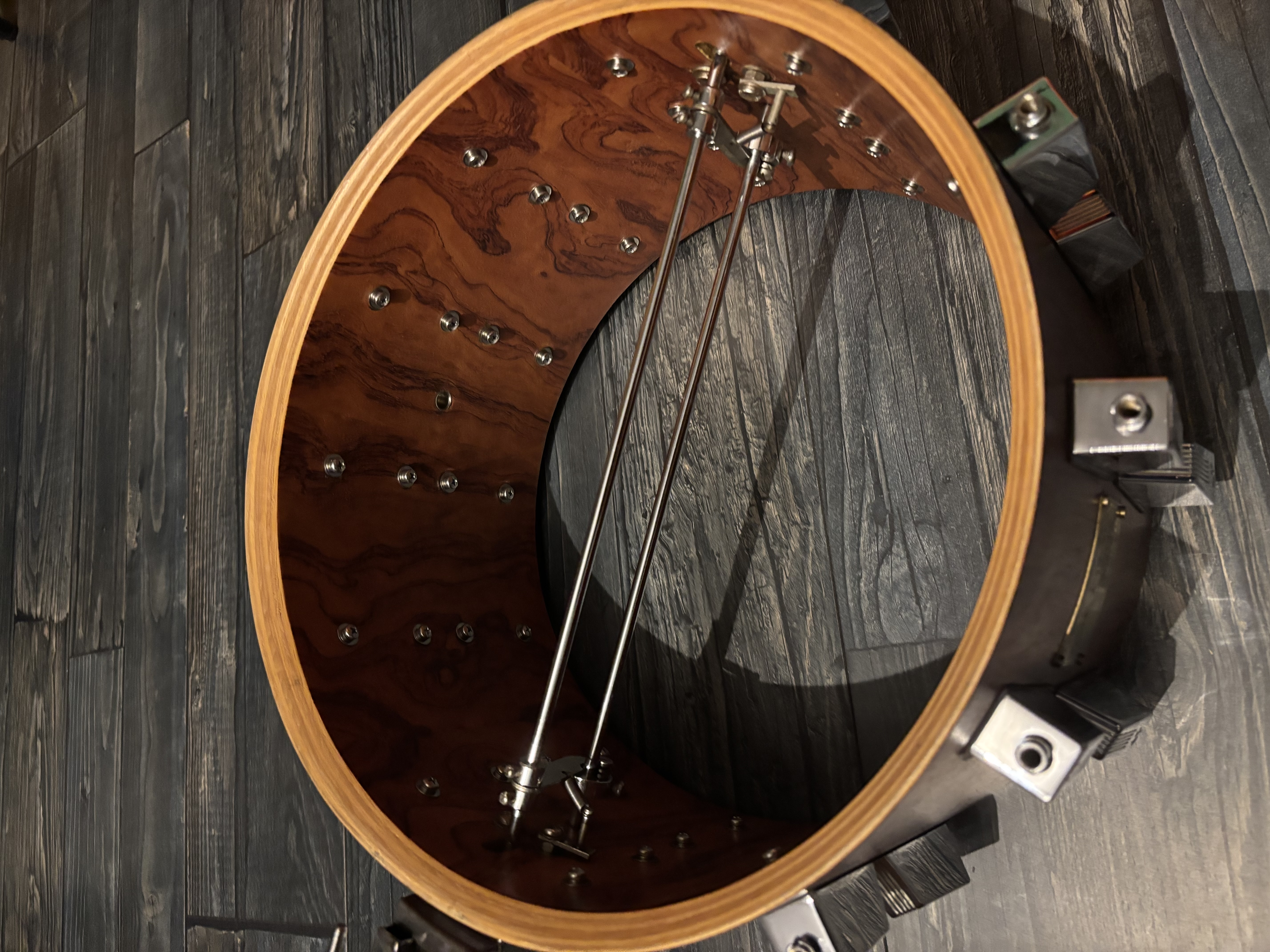 Soon after receiving it, I disassembled it and ordered all new screws, washers, gaskets etc. via ST-Drum. Luckily I also found a 12 Lug Die-Cast Signature hoop for the top.