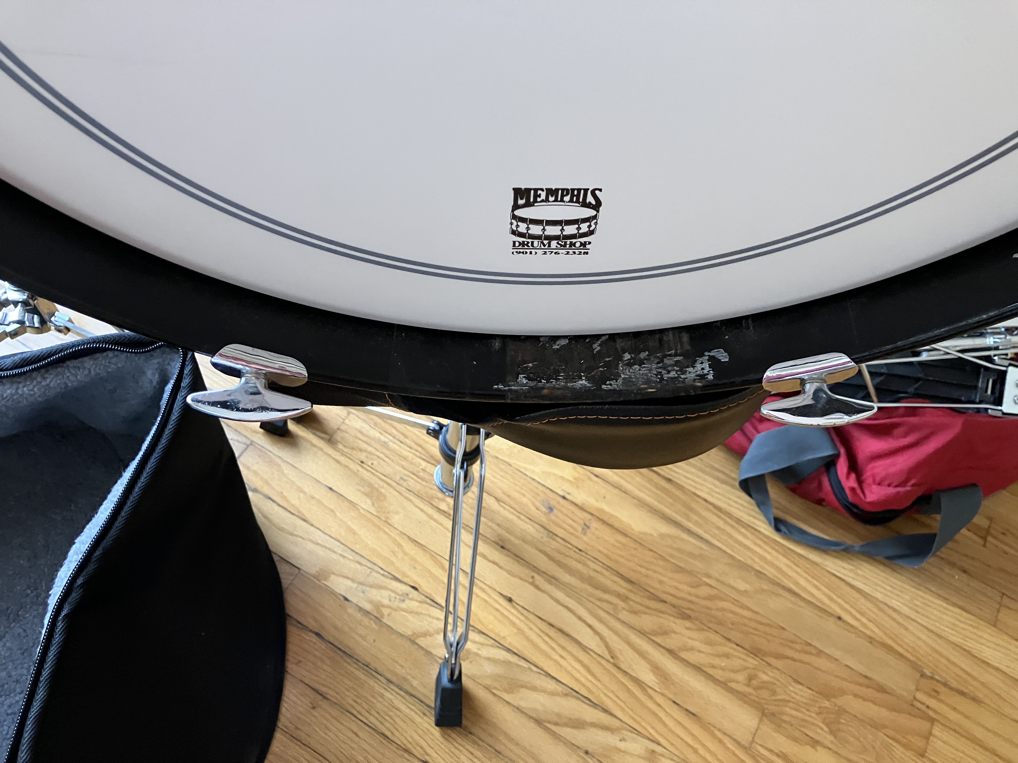 Here's a great set of vintage Sonor 3ply drums from the 60s. I'm not a drum historian so there's probably lots of info you smart Sonor people have that I don't. Here's what I can say: 3ply all around. Modern heads fit fine. All original hoops, lugs and legs. As you can see, the chrome is especially good for its age. I've had many Sonor vintage Teardrop kits and the chrome is by far the best on this particular kit The wrap looks great, as you can see, but is not perfect. There's one spot on the 16 that needs a little glue. Easy fix if you're inclined. the bass looks great and the 13 is practically perfect. I use a snare stand for the 13 but I'm looking for the tom arm and will include it if I find it. I will include a bass drum anchor. I spent a bunch of money re-heading them. Coated Ambassadors top and bottom and Powerstroke on bass drum batter. I will include a soft case for the 13 as well as the 16. All mufflers function although they are a little tight.