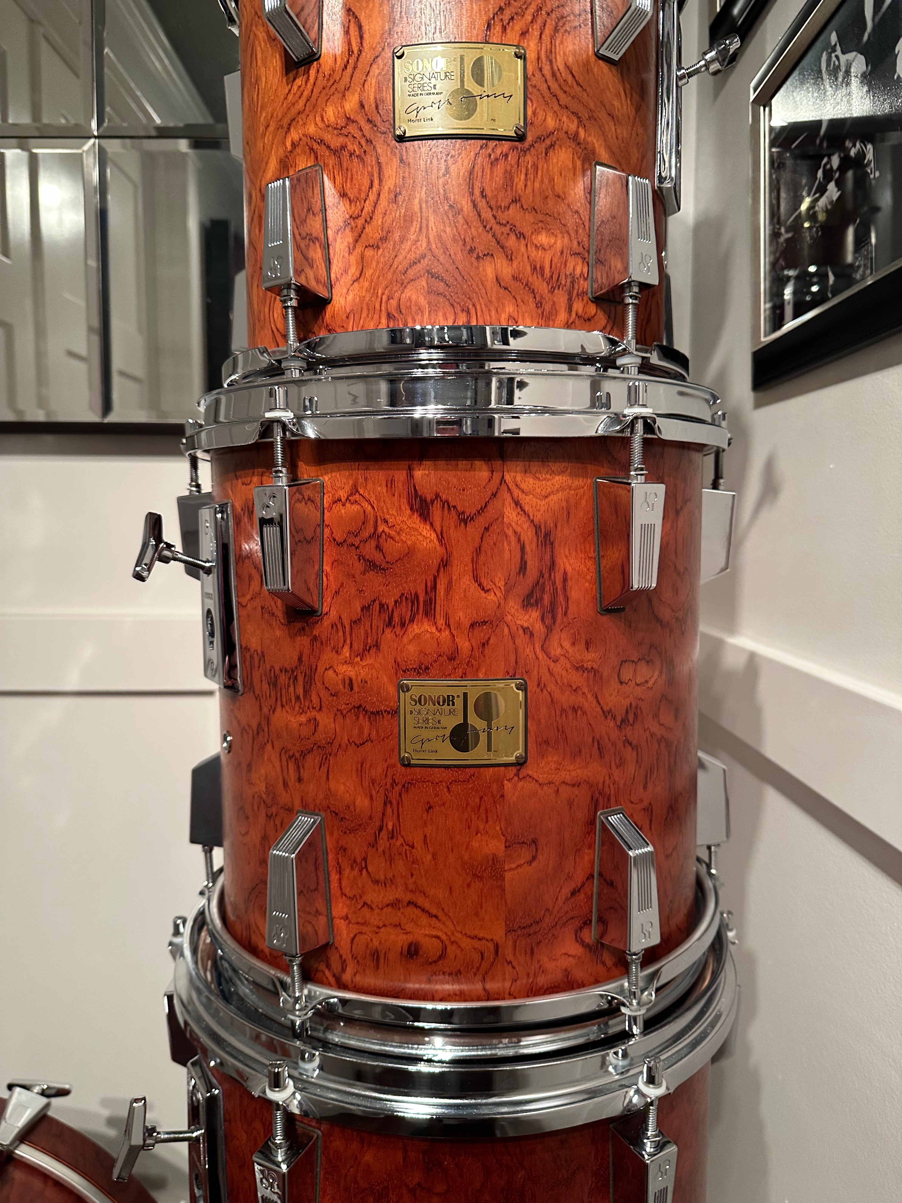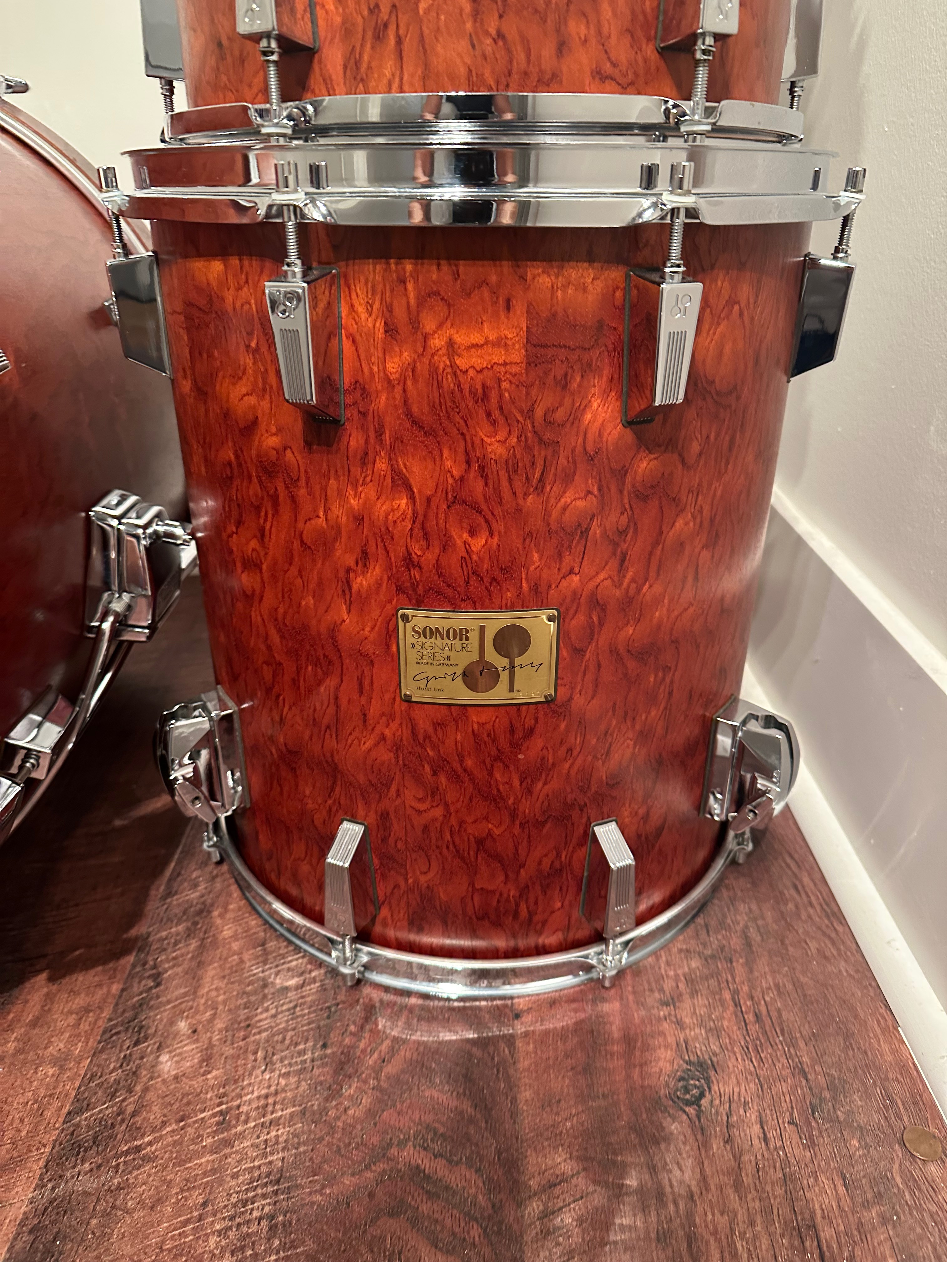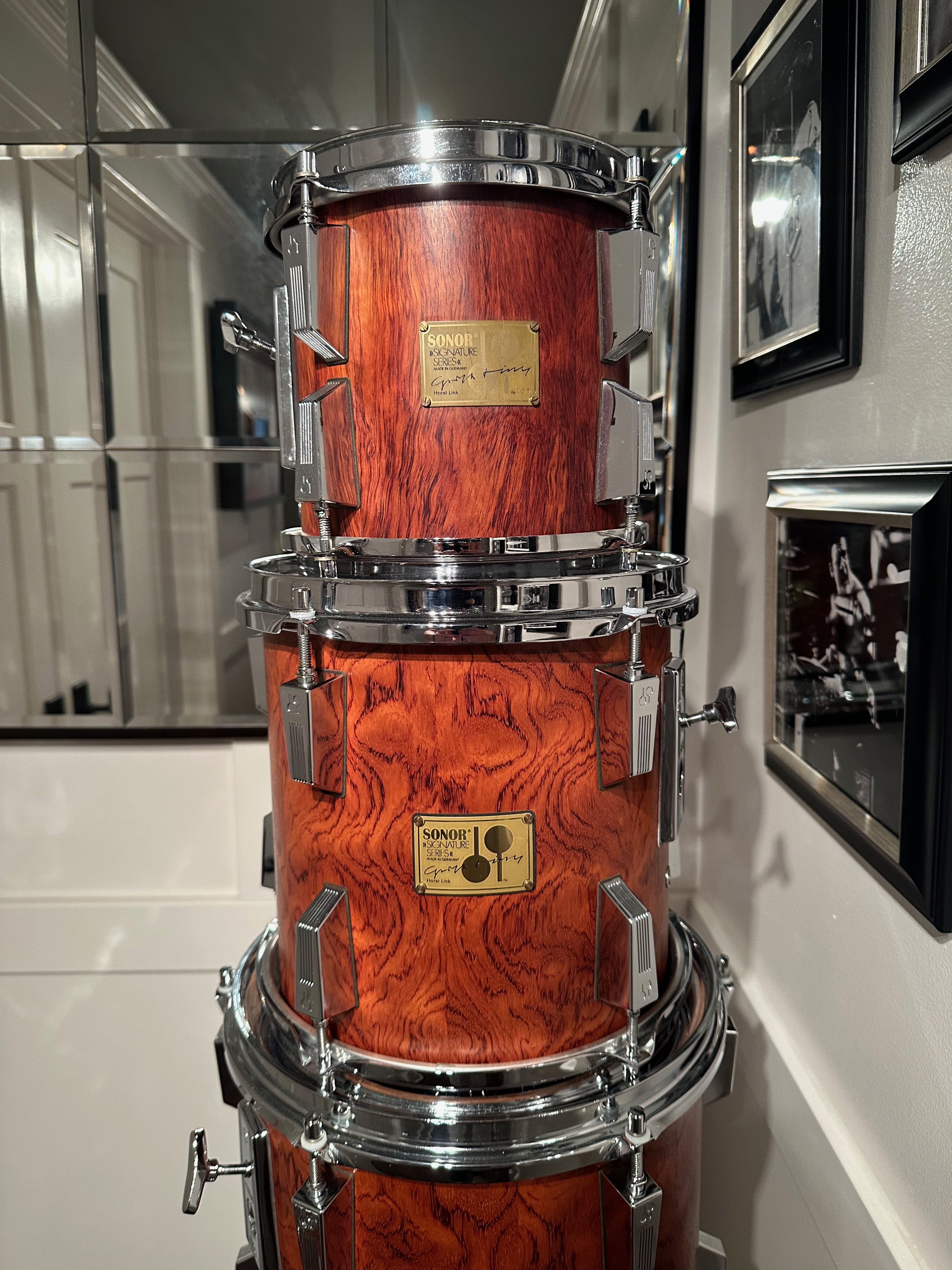 Mint condition, late 1980's Sonor Signature Heavy Bubinga Kit. Shells are perfect. Chrome is immaculate.