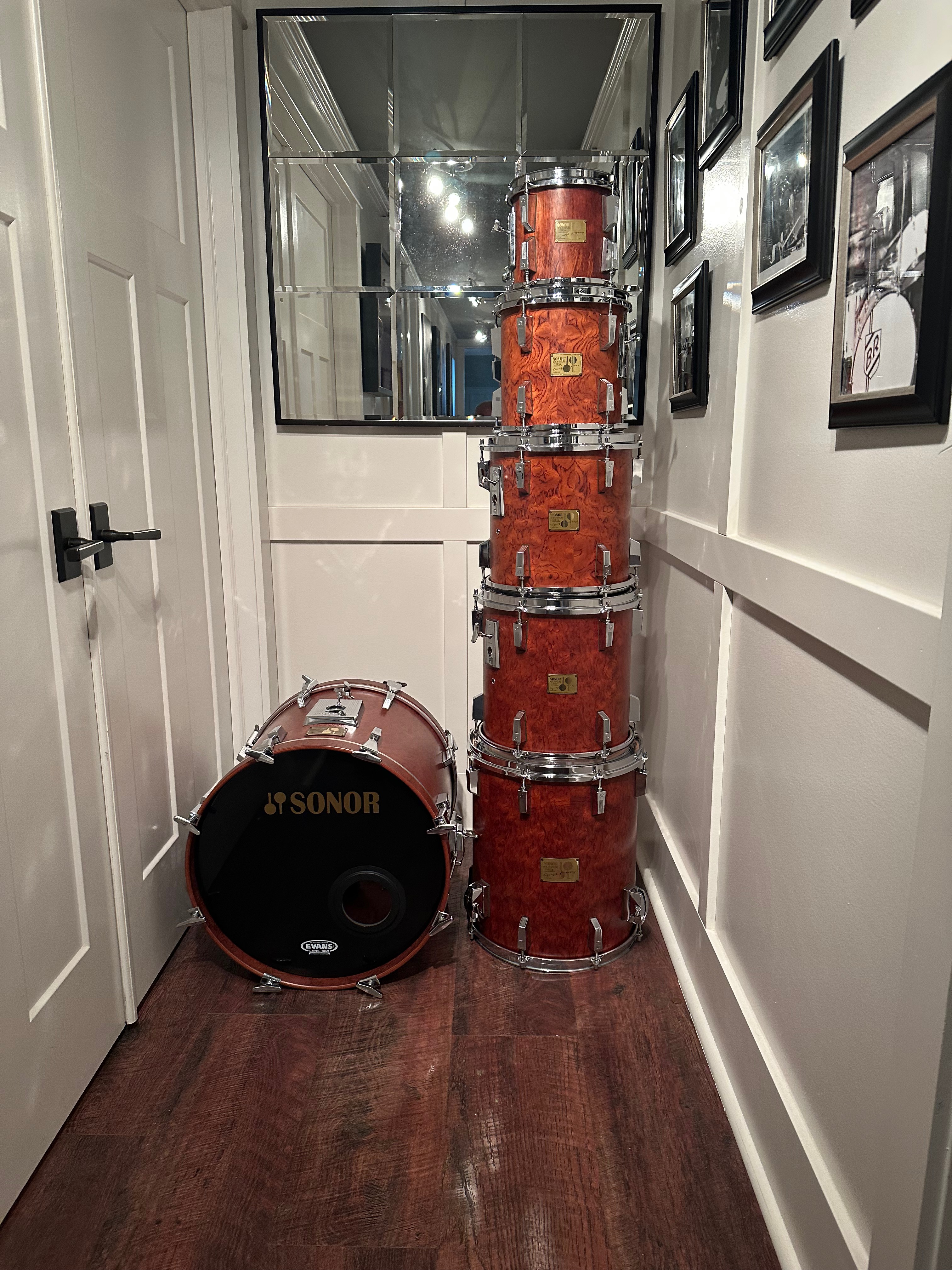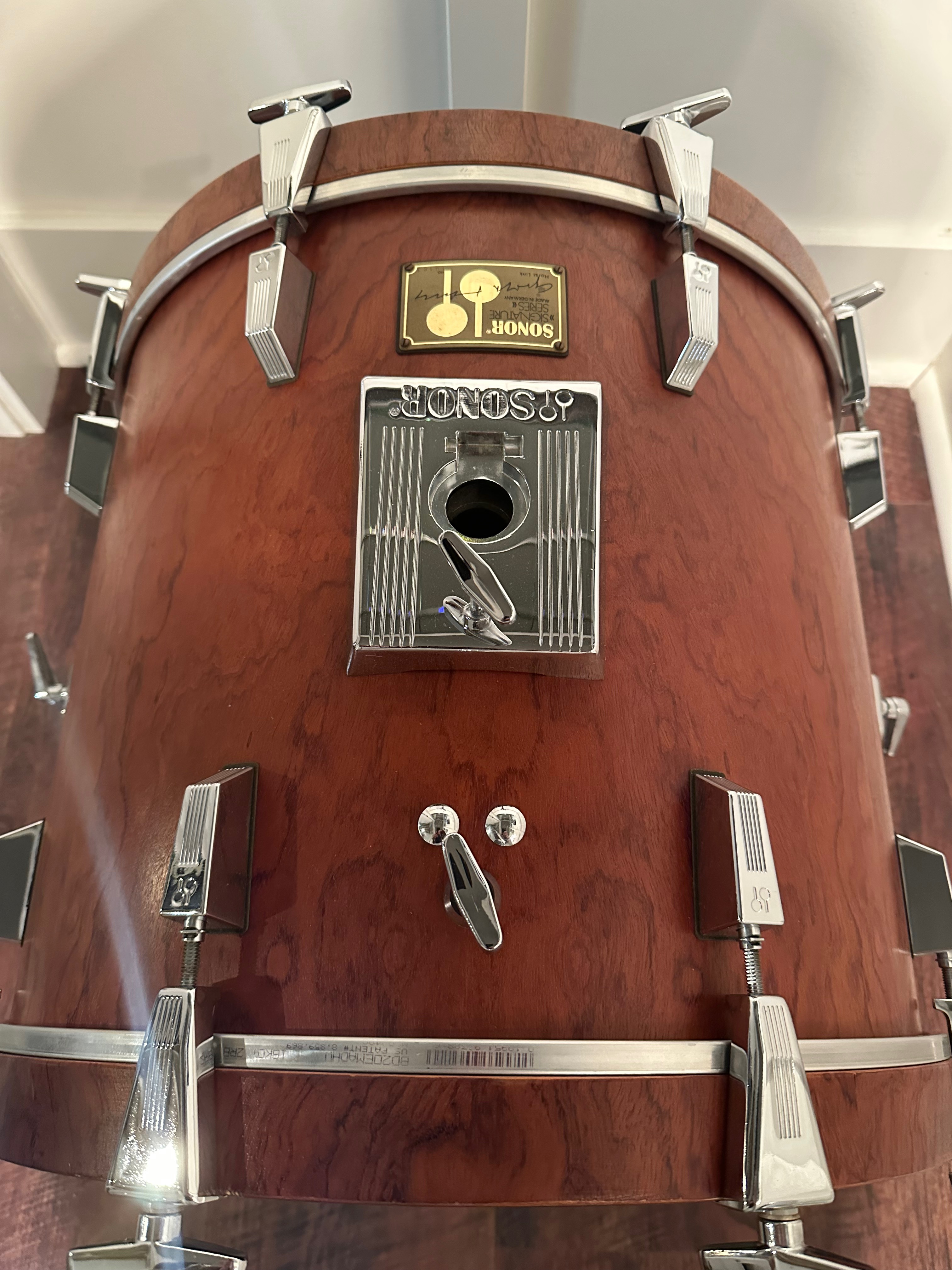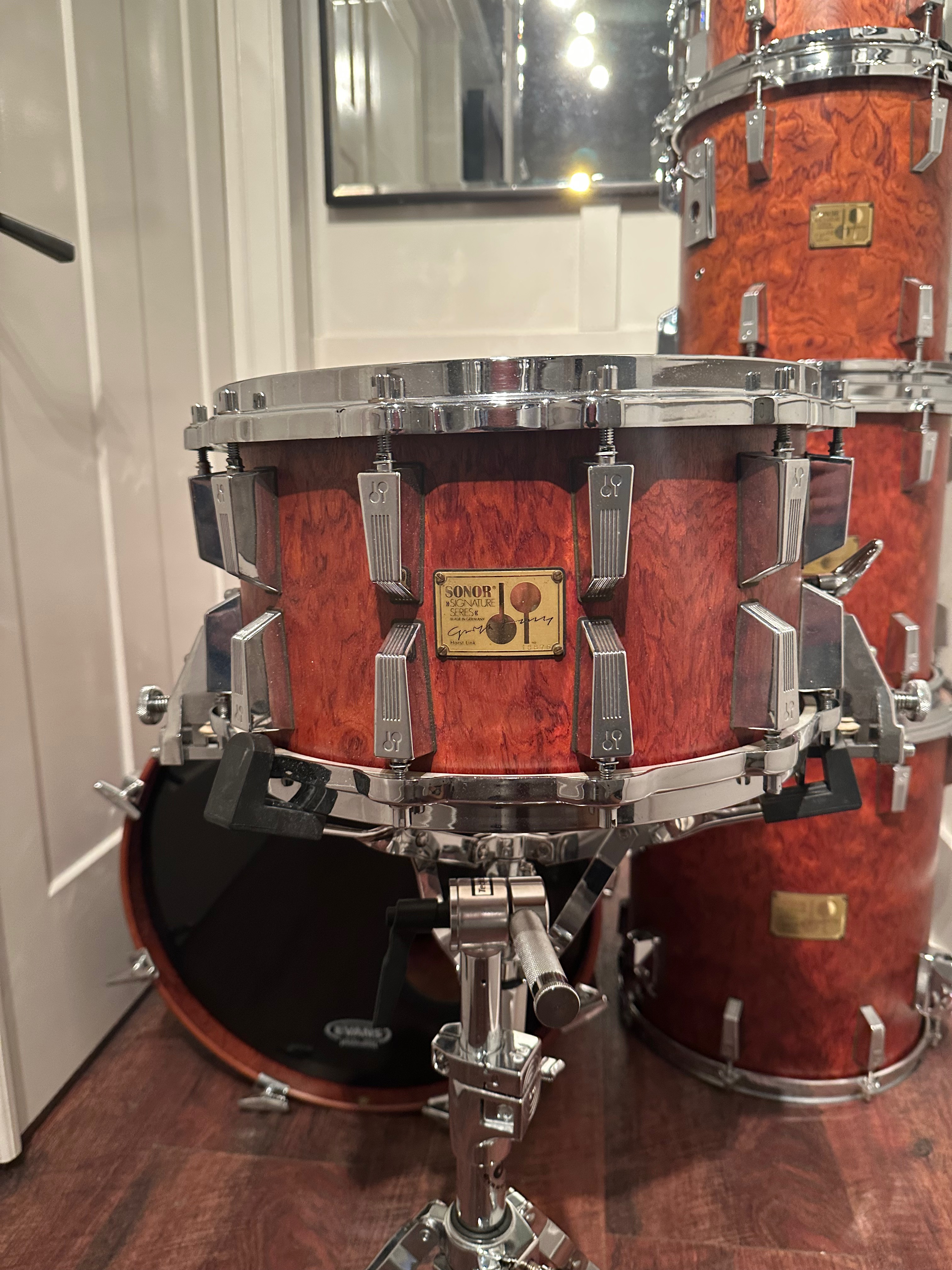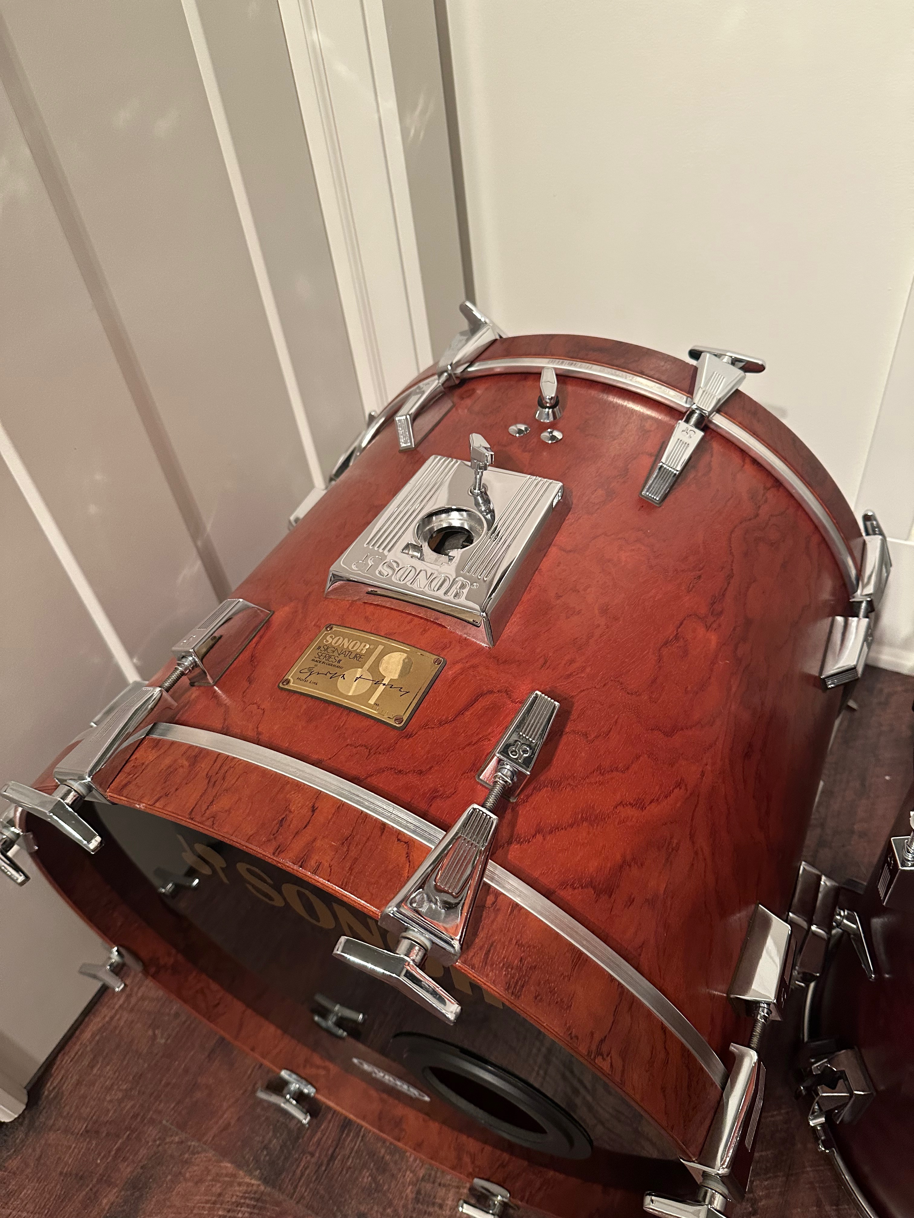 Mint condition, late 1980's Sonor Signature Heavy Bubinga Kit. Shells are perfect. Chrome is immaculate.