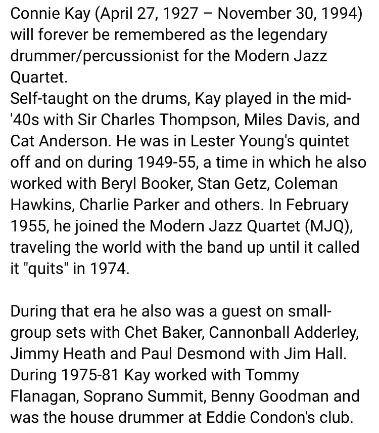 Here is Kenny Clarke on Kay’s Copper Drops at an MJQ reunion show