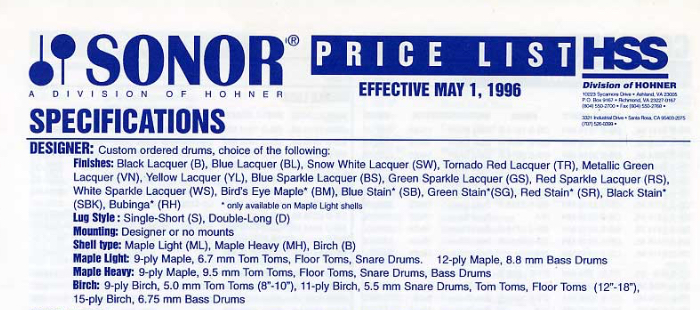 I wish I had access to the old Sonor Museum forum to see what people were saying around that 2003 timeline about those drums but here’s what I think happened. The only price list/catalog to have it show up was the HSS Price list from July 2003. In April 2004 the option was gone and replaced by the Vintage Maole shells. So if he take it by the price list this was a USA only option and only for 9 months. There is no mention of it in any German price lists or catalogs at that time. I don’t know how long in that 9 month period you could actually order them. So they would be very rare. There may be a few more it there because they had the maple light badge on them. Some people could have sold it over the years and thought they were maple and mislabeled because I have never seen a beech designer set ever come up for sale.