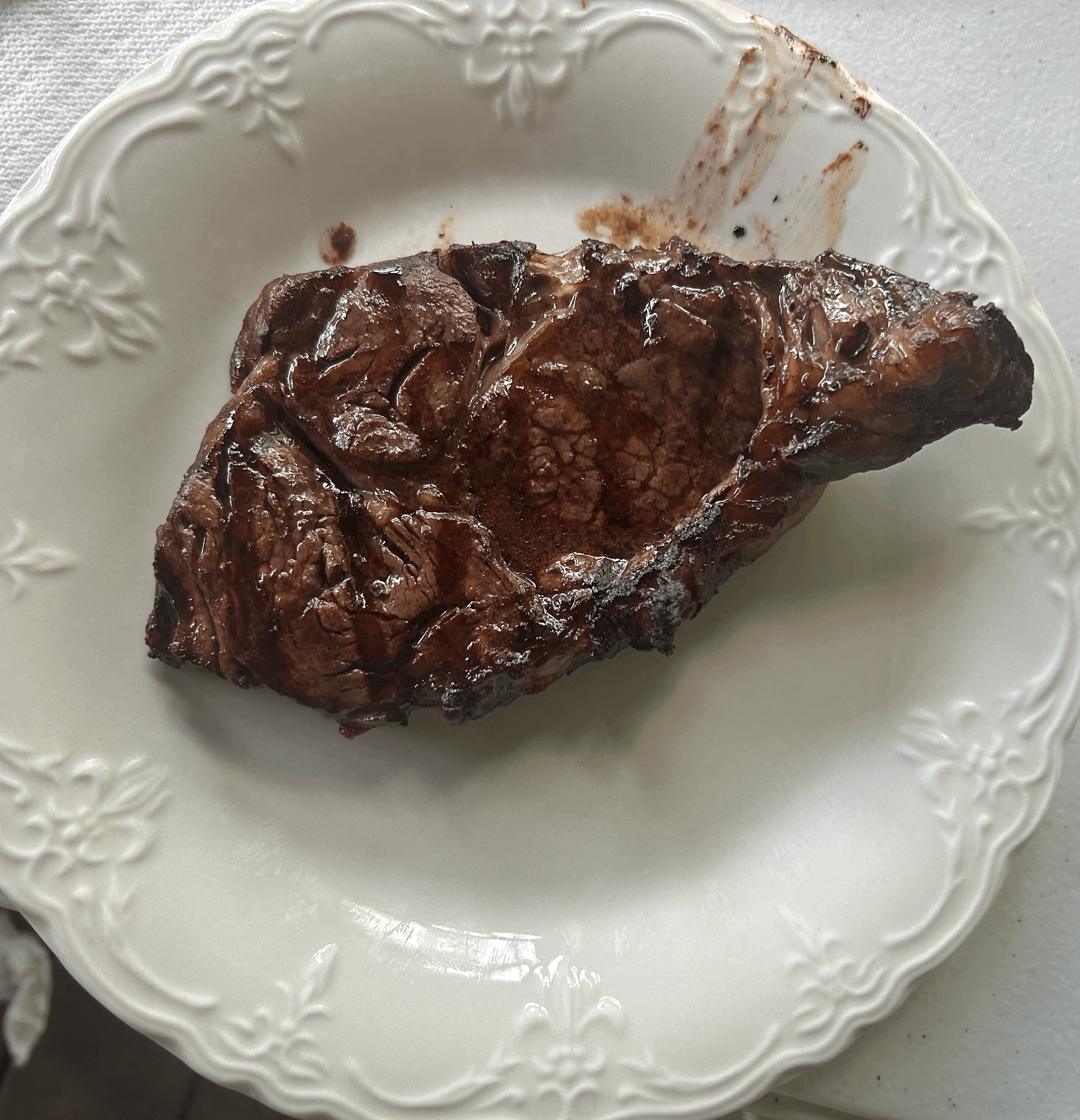 After that, I meandered through the country looking for snakes on dirt roads, but I never found one. They were all paved, and there weren't any snakes to be seen on them, either. As I finally arrived at my destination, my host already had the grill warmed and was about to put Striplings steaks on to cook. They cooked up great and juicy, and I ended up taking about half my meal to go and have been enjoying it today.