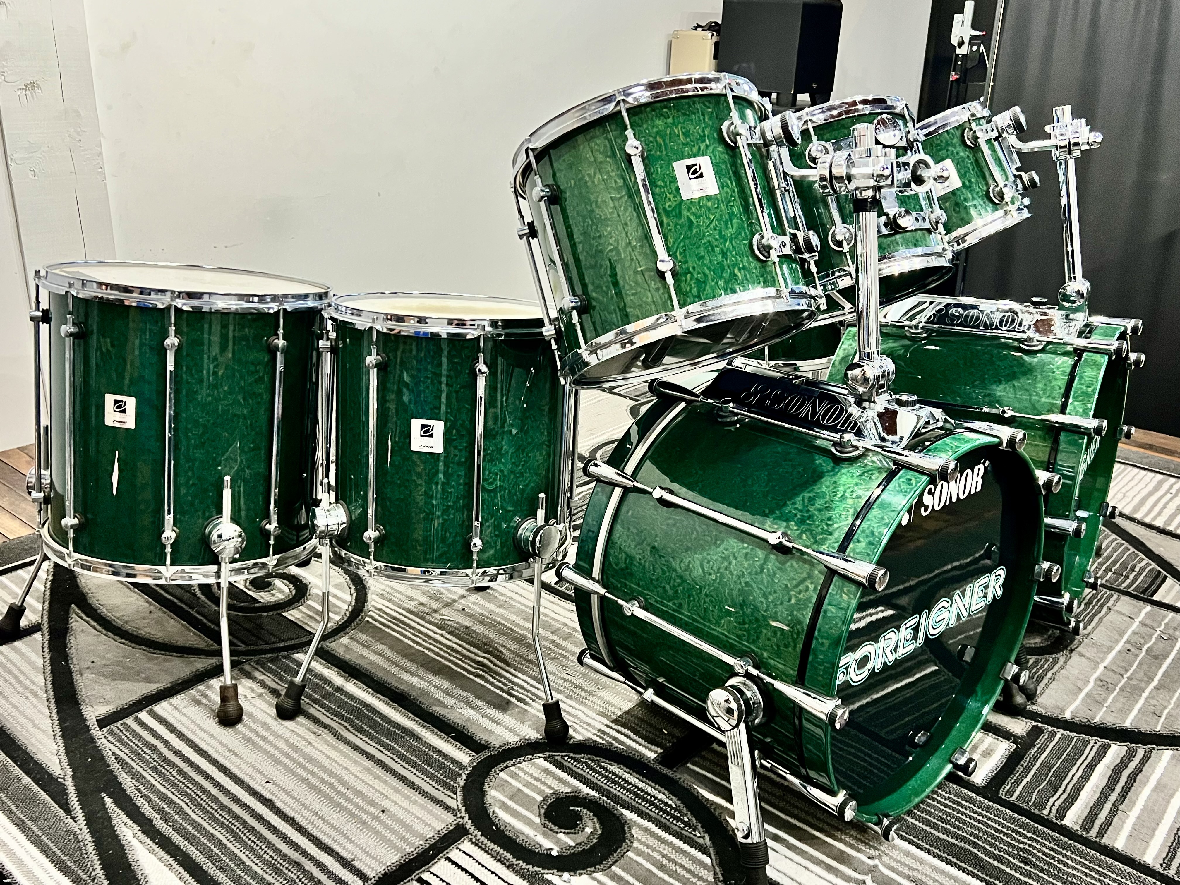 Oooh, would love either the larger floor tom or the large hanging tom (shown on left side) if he ever parts those out. I know that'd be a long shot but I have the other pieces already. These drums look so good under lighting and I gig with mine a lot cause the sound just delivers every time! They're heavy though but that's sort of like keeping me strong, I hope.