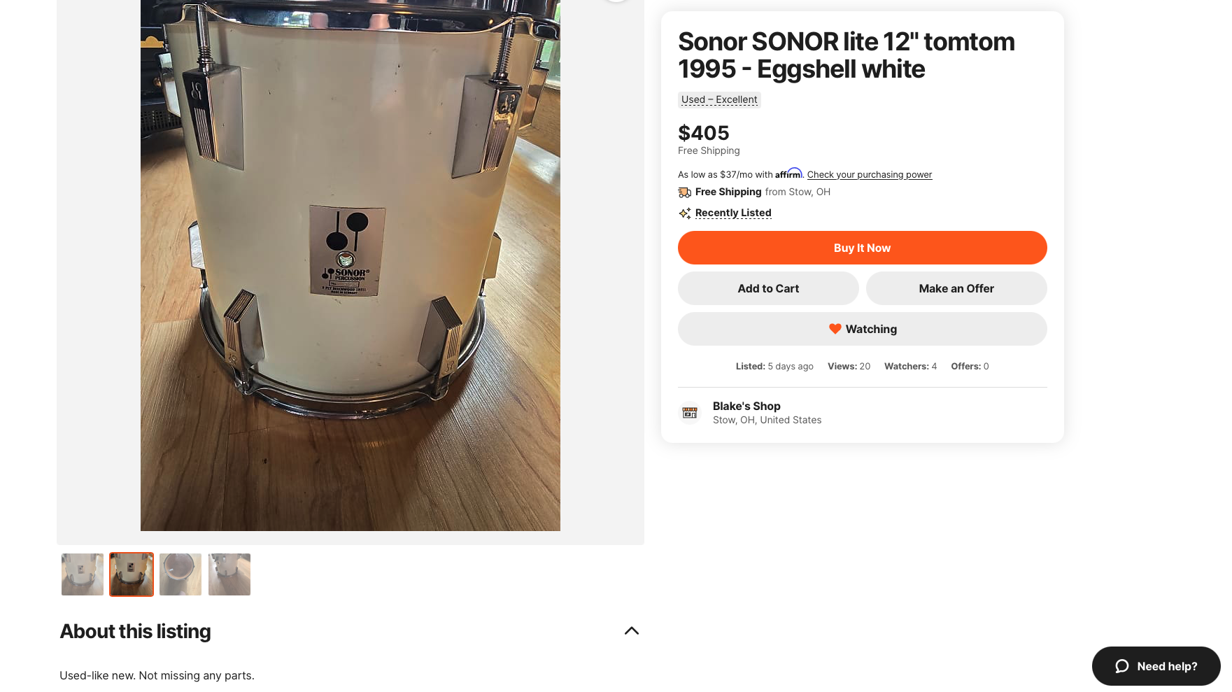 I am not really one to try to make a public spectacle of something like this, but this is nuts! Excellent condition, Like New (in the description). It's not a SonorLite and it's pretty banged up AND someone has tried to drill the grommet out of the shell, the lip is missing from around one of the badges.