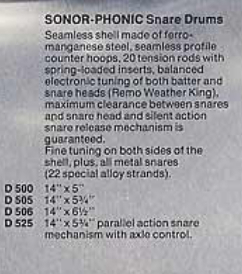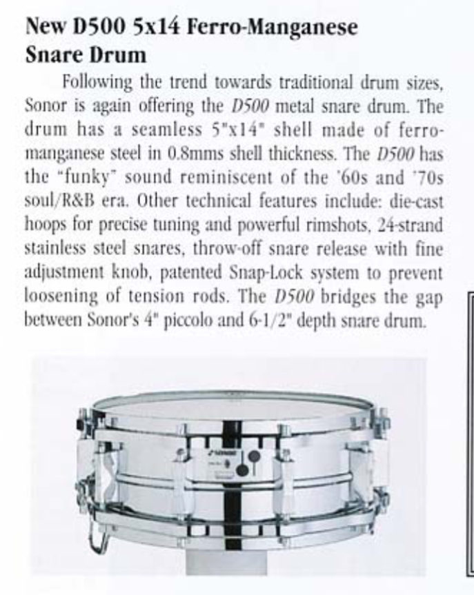 So I always found the D500 reissue to be a very odd choice. Here is the write up on that drum from the 1993 Sonor World Beat Magazine.