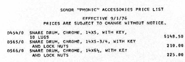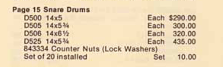 To add to THAT - the D 500 reissue was very quickly replaced with the 14x5" Designer. The Designer lacked the center bead in the shell, and had different lugs. All else was the same. But, the Designer didn't have the balls the D 500 reissue had, in my experience. I had both at the same time.